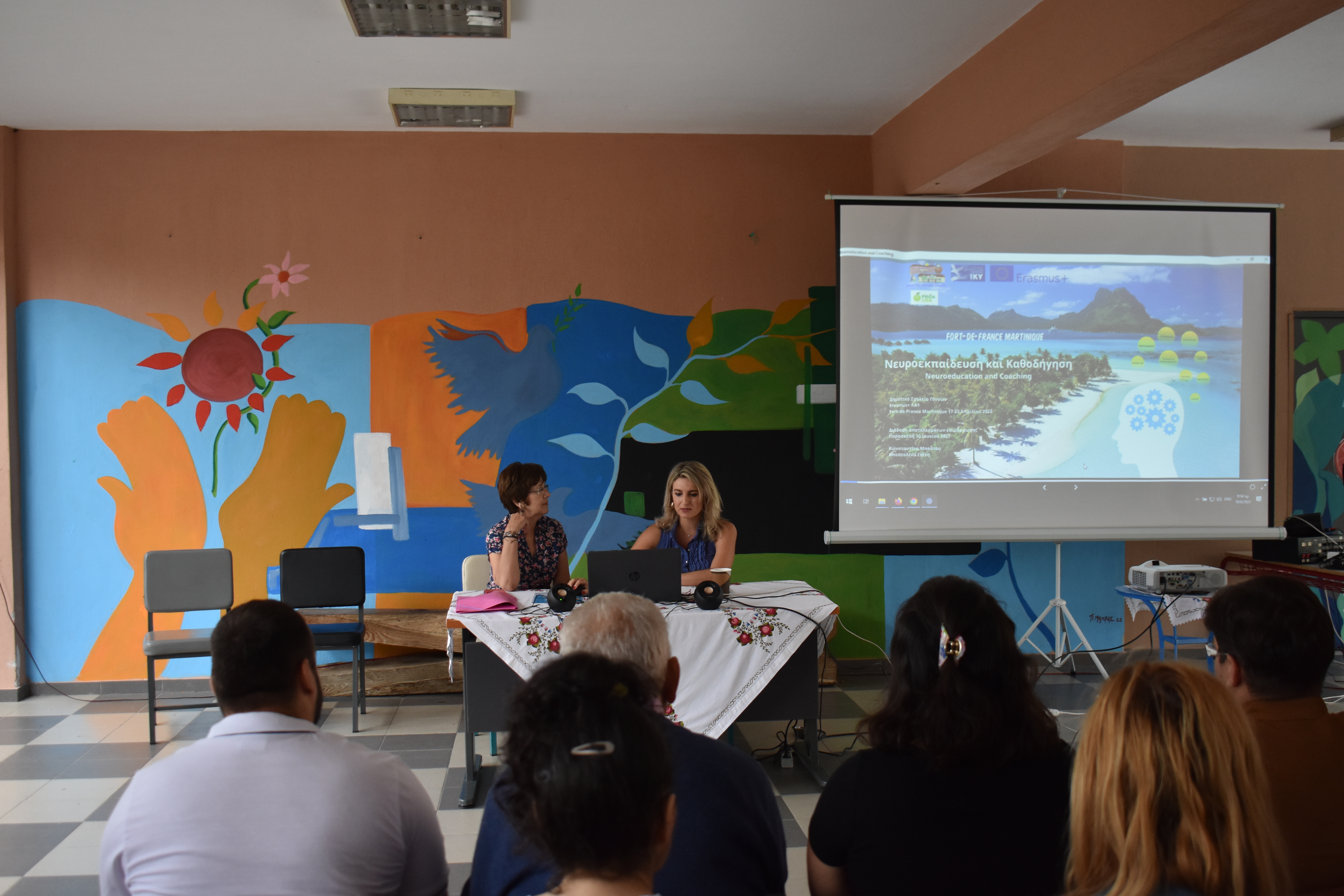 Η Δ/ντρια του σχολείου κ. Κωνσταντίνα Μπούτου και η κ. Αποστολίνα Σαΐτη παρουσίασαν το υλικό από τη 2η κινητικότητα που πραγματοποιήθηκε στη Μαρτινίκα της Καραϊβικής τον Απρίλιο του 2022 με θέμα επιμόρφωσης «Neuroeducation and coaching». Παρουσιάστηκε ο τρόπος λειτουργίας του ανθρώπινου εγκεφάλου και νέες τεχνικές καθοδήγησης της μαθησιακής διαδικασίας, με επίκεντρο τον εγκέφαλο. Παρουσιάστηκαν τεχνικές παιχνιδοποίησης και τεχνικές προγύμνασης του εγκεφάλου οι οποίες μπορούν να υλοποιηθούν μέσα και έξω από το περιβάλλον της τάξης.
