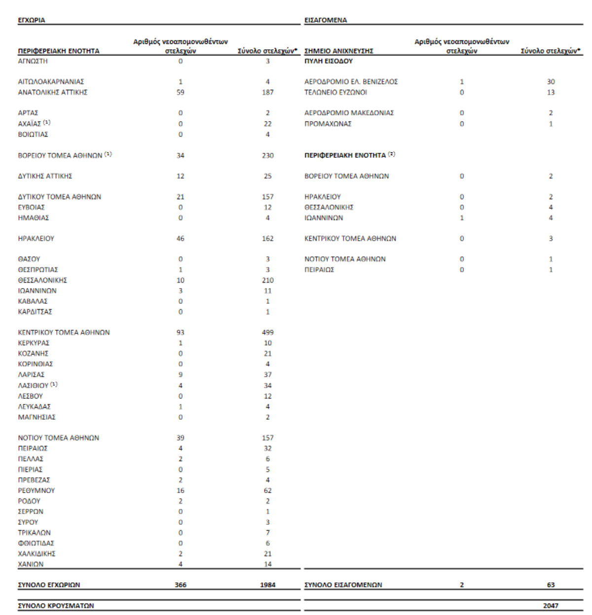 Συνολικά έχουν ταυτοποιηθεί 2.047 θετικά για την παρουσία μετάλλαξης Β.1.1.7/UK lineage (Variant VOC_202012) (Πίνακας 4) και 51 θετικά για την παρουσία μετάλλαξης B.1.351/South Africa (Variant 501.V2) από την έναρξη λειτουργίας του Εθνικού Δικτύου Γονιδιωματικής Επιτήρησης για τις μεταλλάξεις του SARS- CoV-2 έως σήμερα.